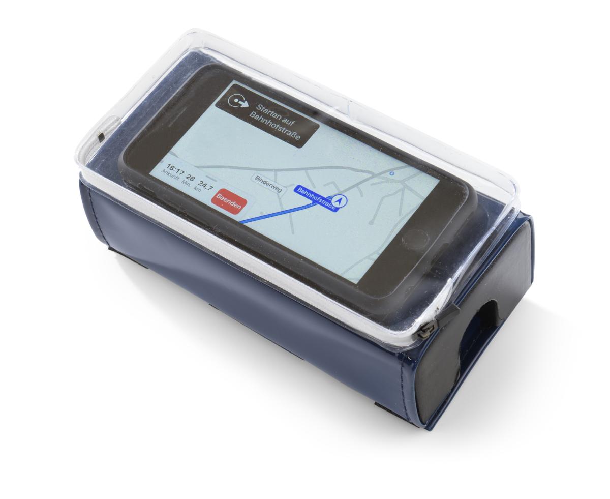 - Smartphonehülle mit Klettverschluss am Lenkerpolster befestigt